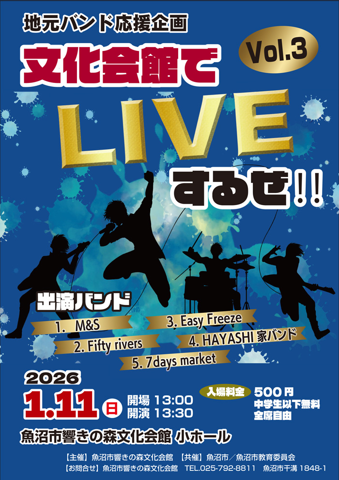 地元バンド応援企画『文化会館でLIVEするぜ!!』Vol.3