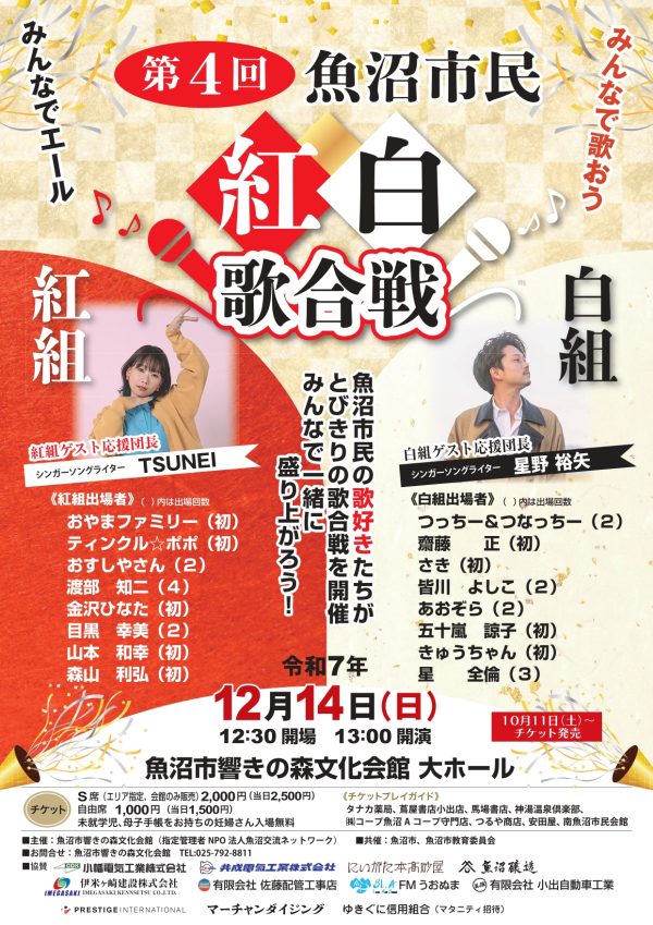 今年も魚沼市を歌で元気に!第4回魚沼市民紅白歌合戦を開催します。