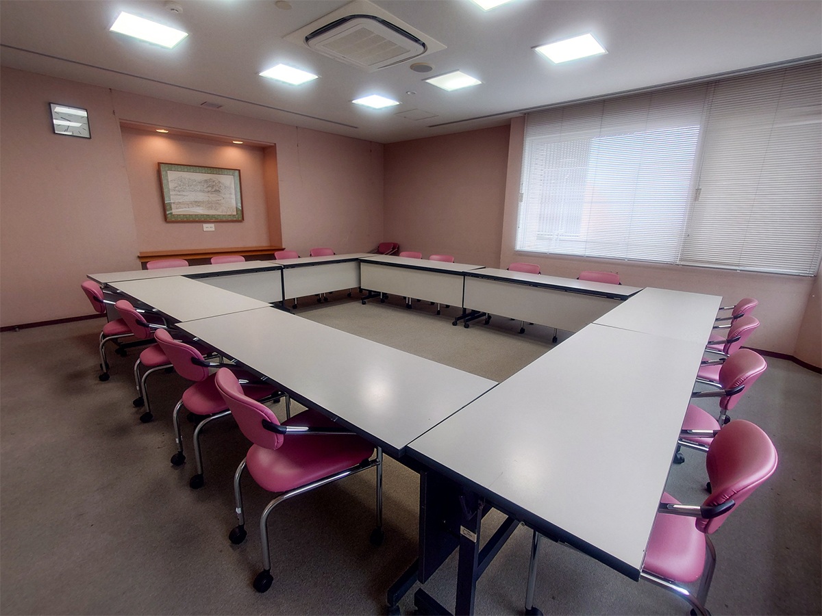 15名程度の会議を行えます。会議机・イスも備え付けてあります。